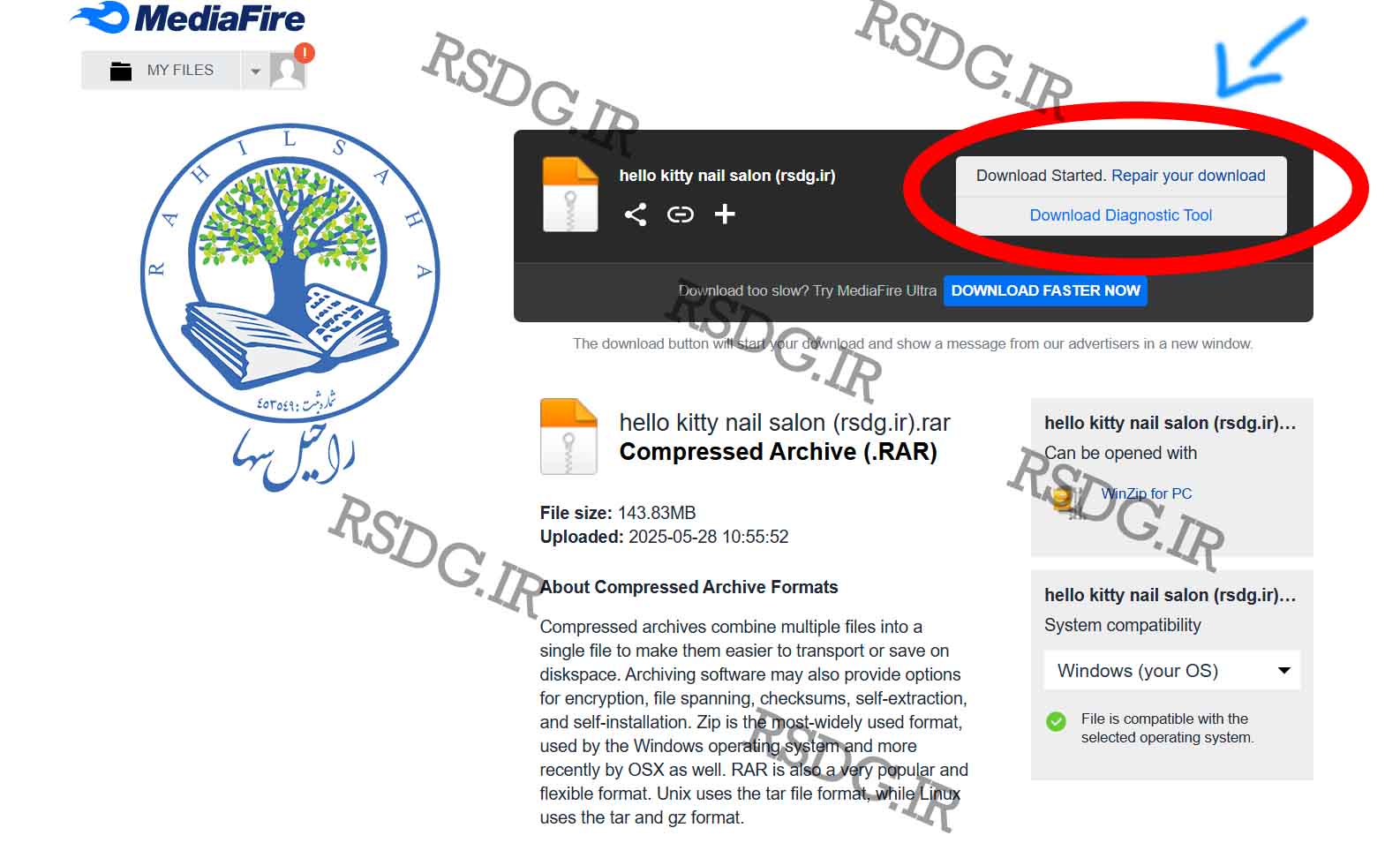 وقتی روی لینک مدیافایر کلیک میکنی، وارد صفحه دانلود فایل میشی.