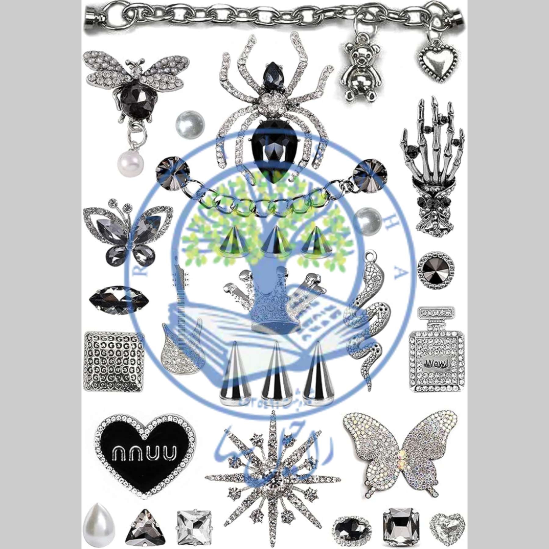 استیکر اسکرپ بوک بدون برش فانتزی پینترستی طرح آیتم های نقره ای براق