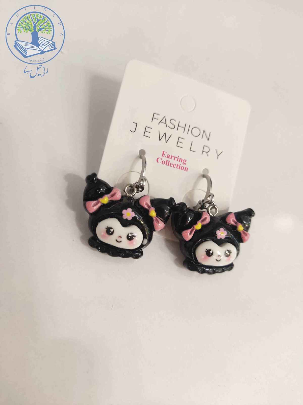 گوشواره پینترستی استیل سانریو کله کرومی کلاه مشکی گوش پاپیونی