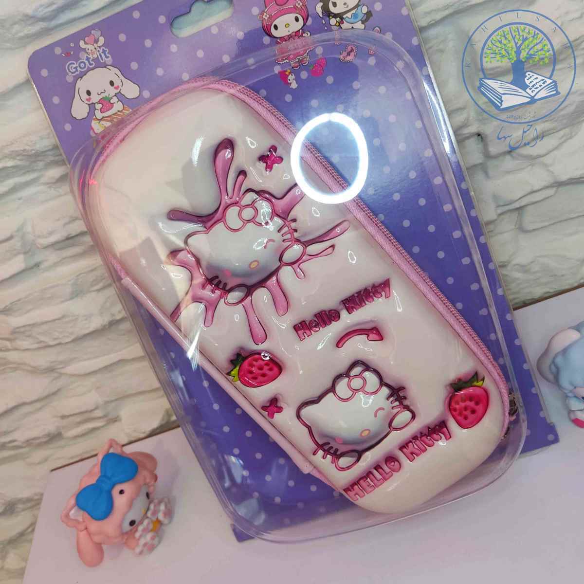 جامدادی دخترانه فانتزی سانریو طرح برجسته براق سانریو کیتی صورتی دو سر زیپ