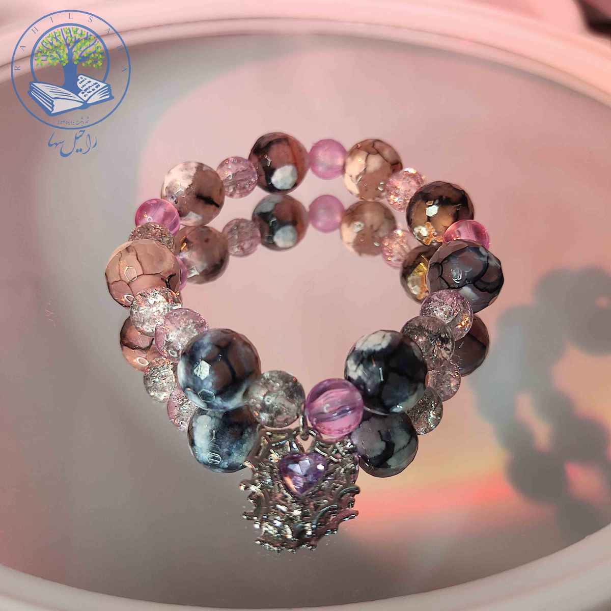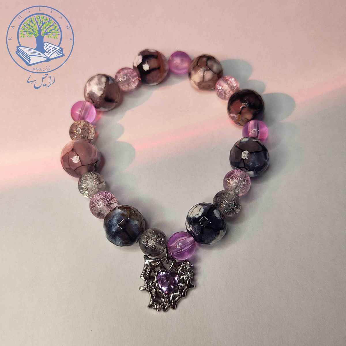 دستبند تک ردیف سنگ طبیعی عقیق کوارتز آویز نگین دار بنفش