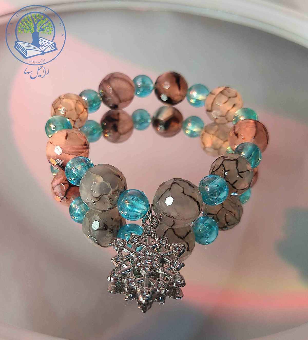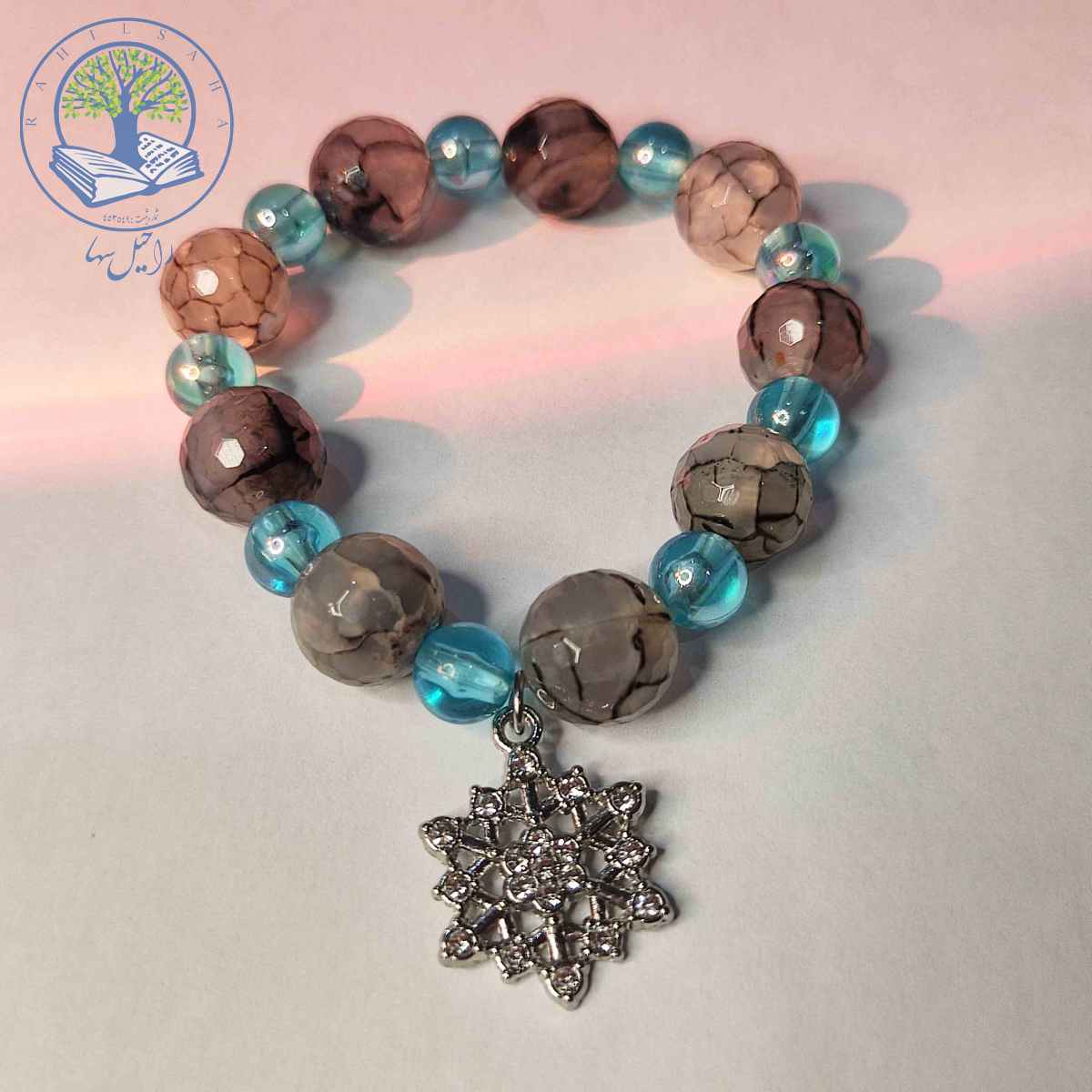 دستبند تک ردیف سنگ طبیعی عقیق کوارتز آویز نگین دار آبی