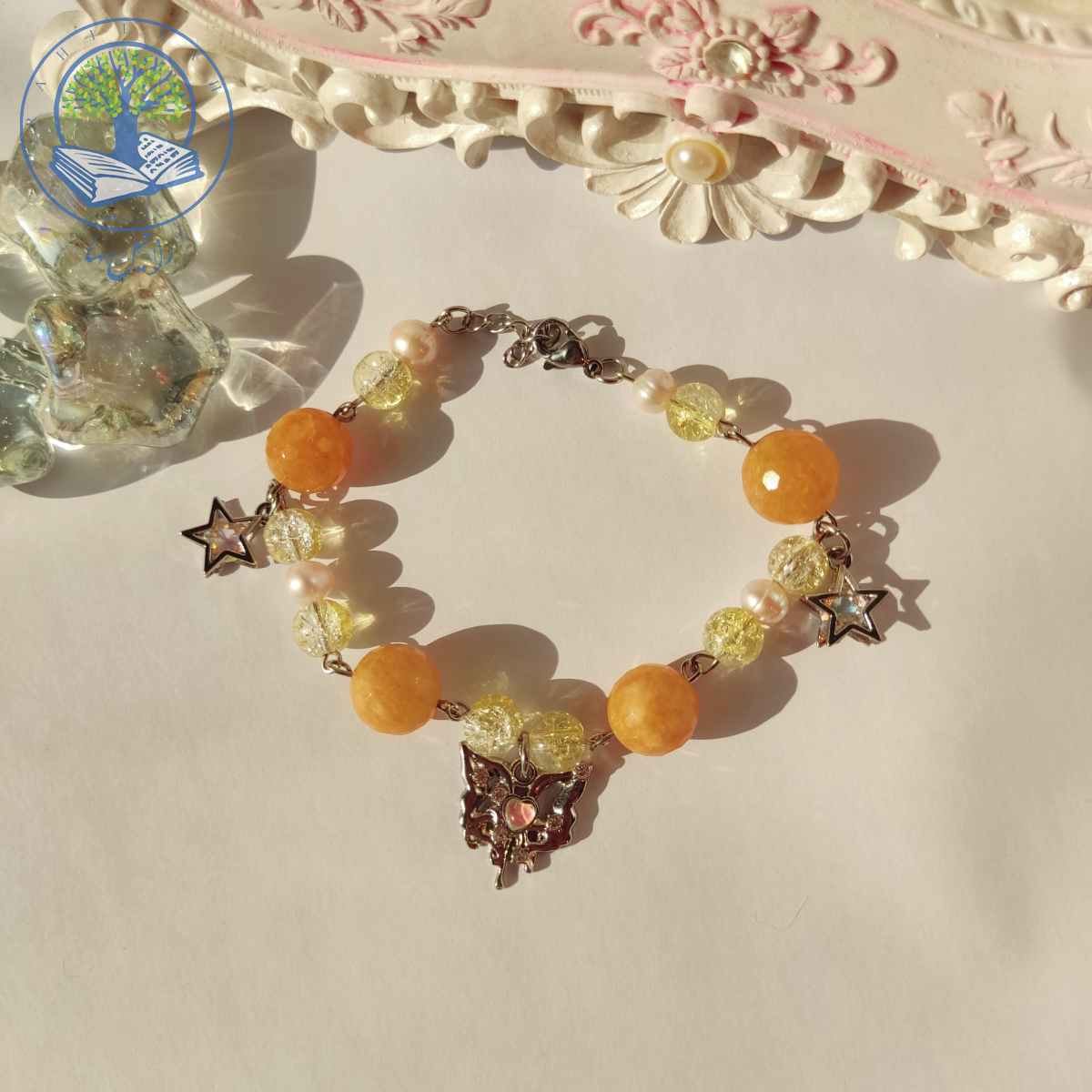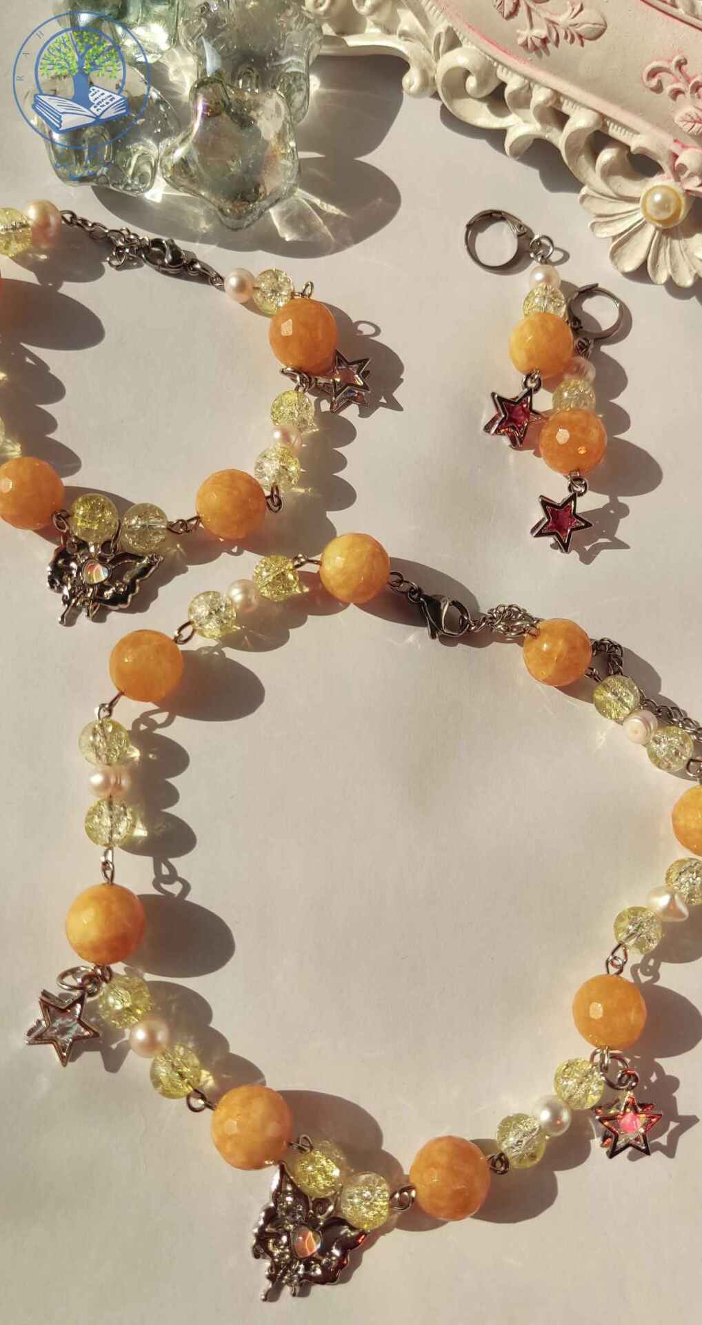 گوشواره سنگ طبیعی پینترستی کلسیت زرد و مروارید پرورشی آویز ستاره