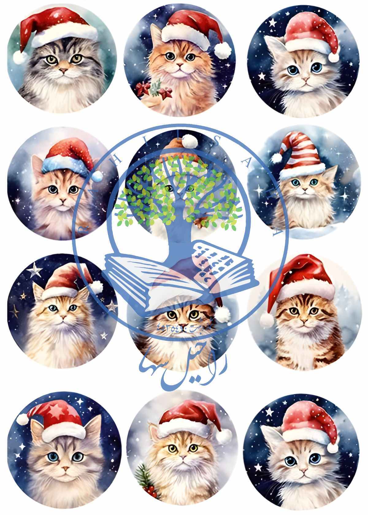 استیکر بدون برش پینترستی کریسمسی وینتیج گربه دایره ای کد 7