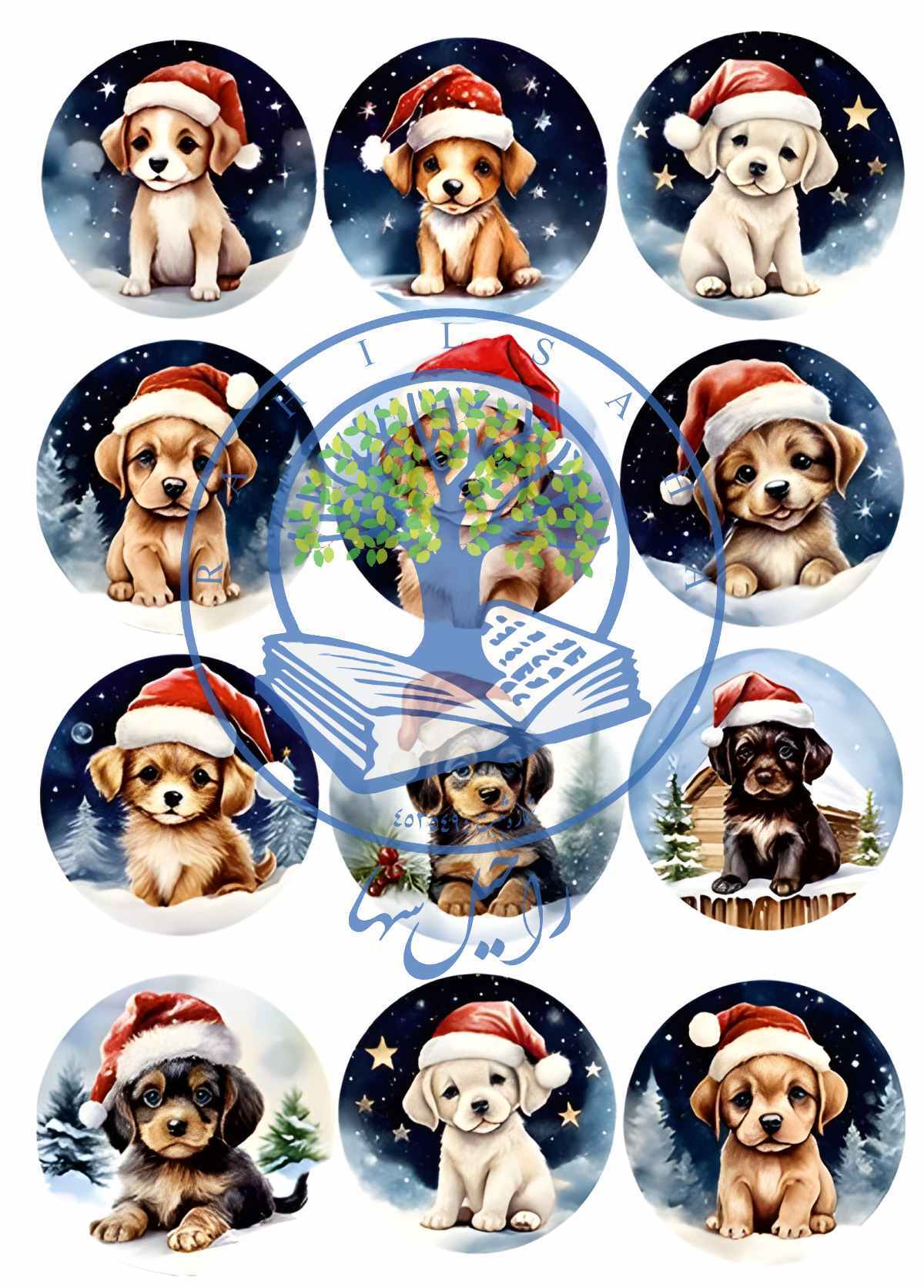 استیکر بدون برش پینترستی کریسمسی وینتیج سگ دایره ای کد 8